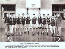 Boys Basketball Team (left to right): Mgr. Henry Newby, Jack Harden, Franklin Grant, David Mooney, Milton Martin, Herman Searcy, Jimmy Newman, Ray Newton, Billy Setliff, Galen Chambers, Alvis Hopkins, Coach J. Everette Hudson.