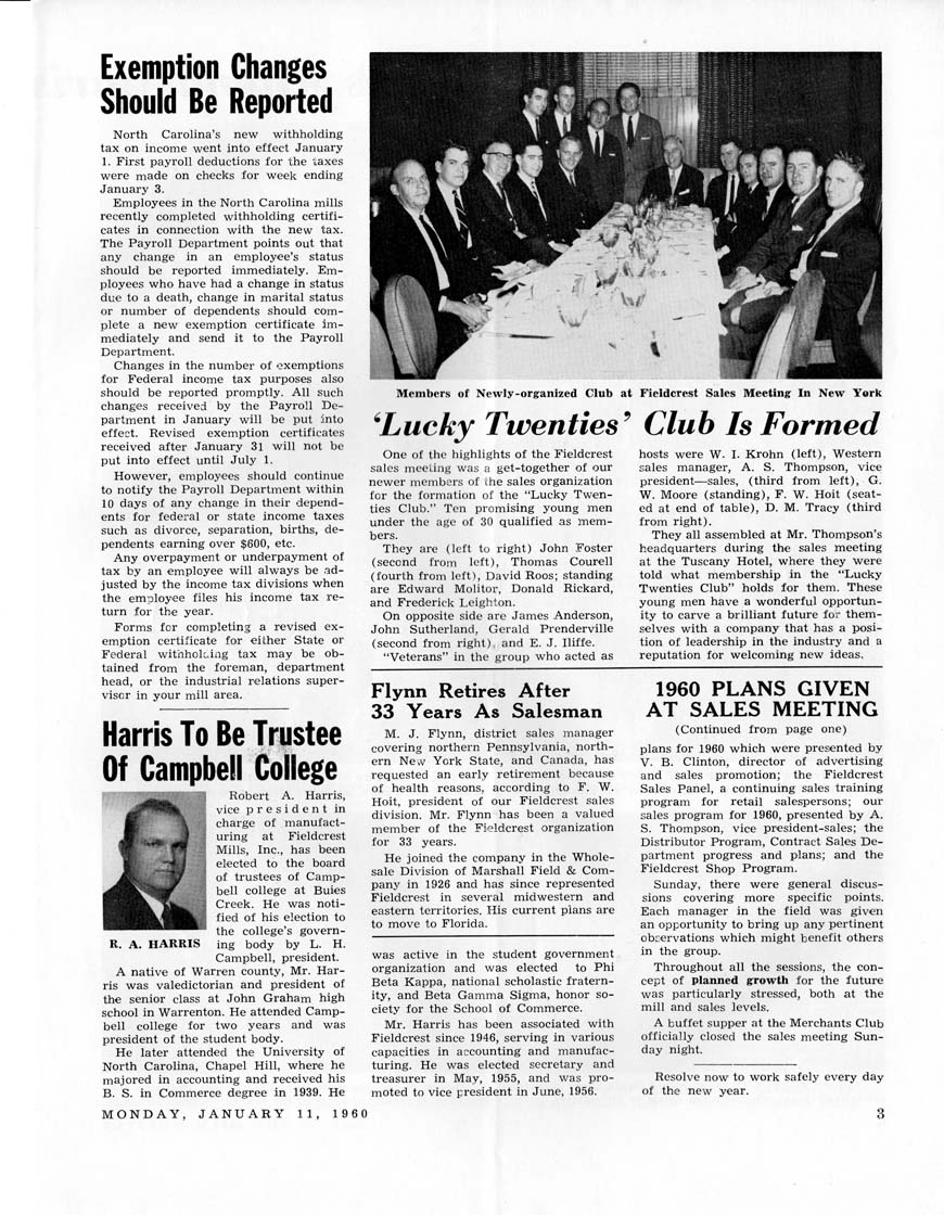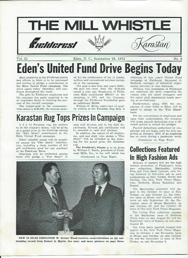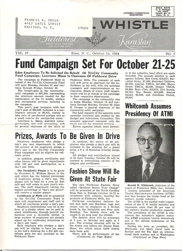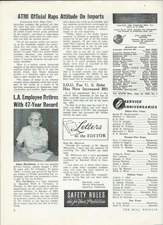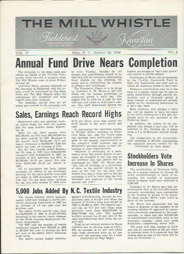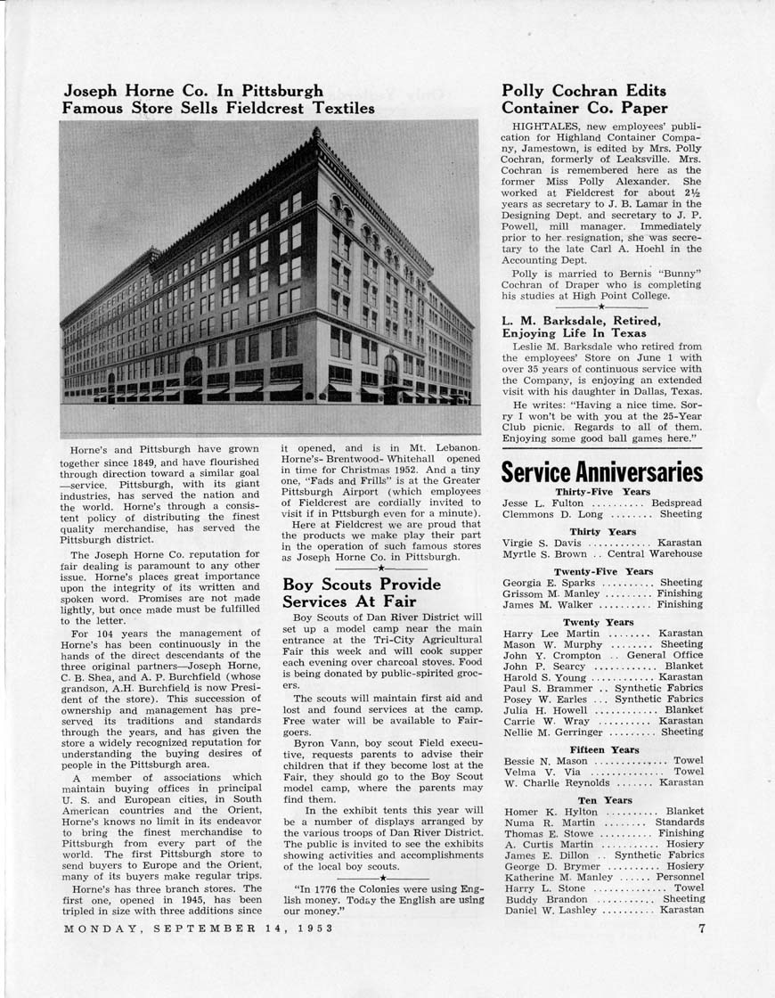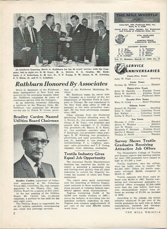Jim Riddle has contributed the following copies of The Mill Whistle, a publication of Marshall Field & Company, Inc., issued "Every Two Weeks By And For the Employees." Click on the links below to browse copies.