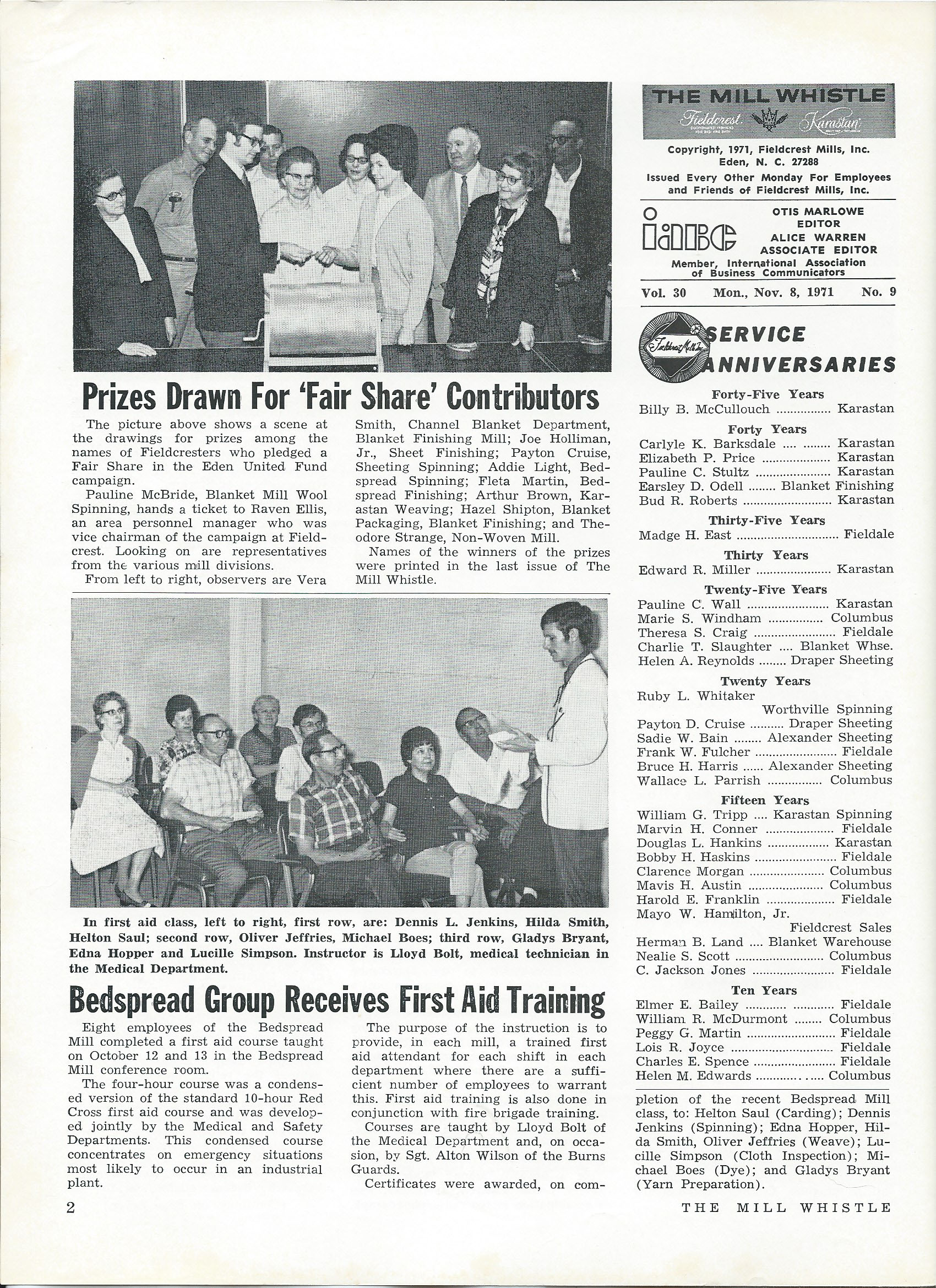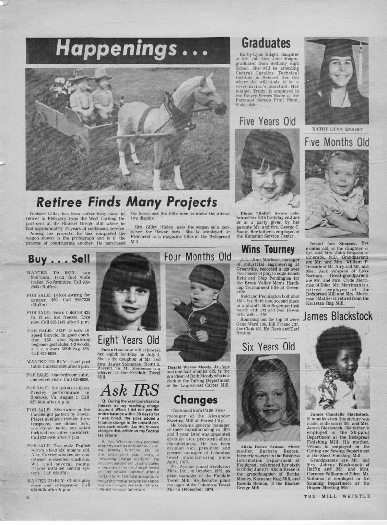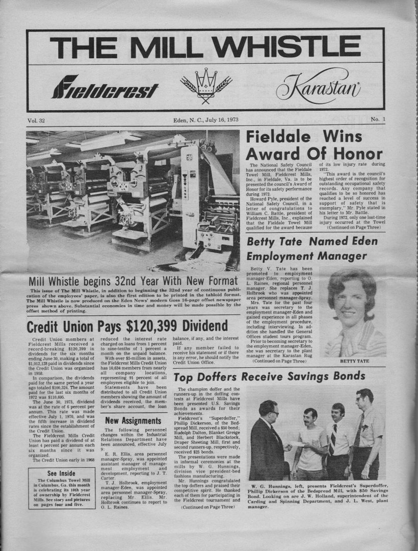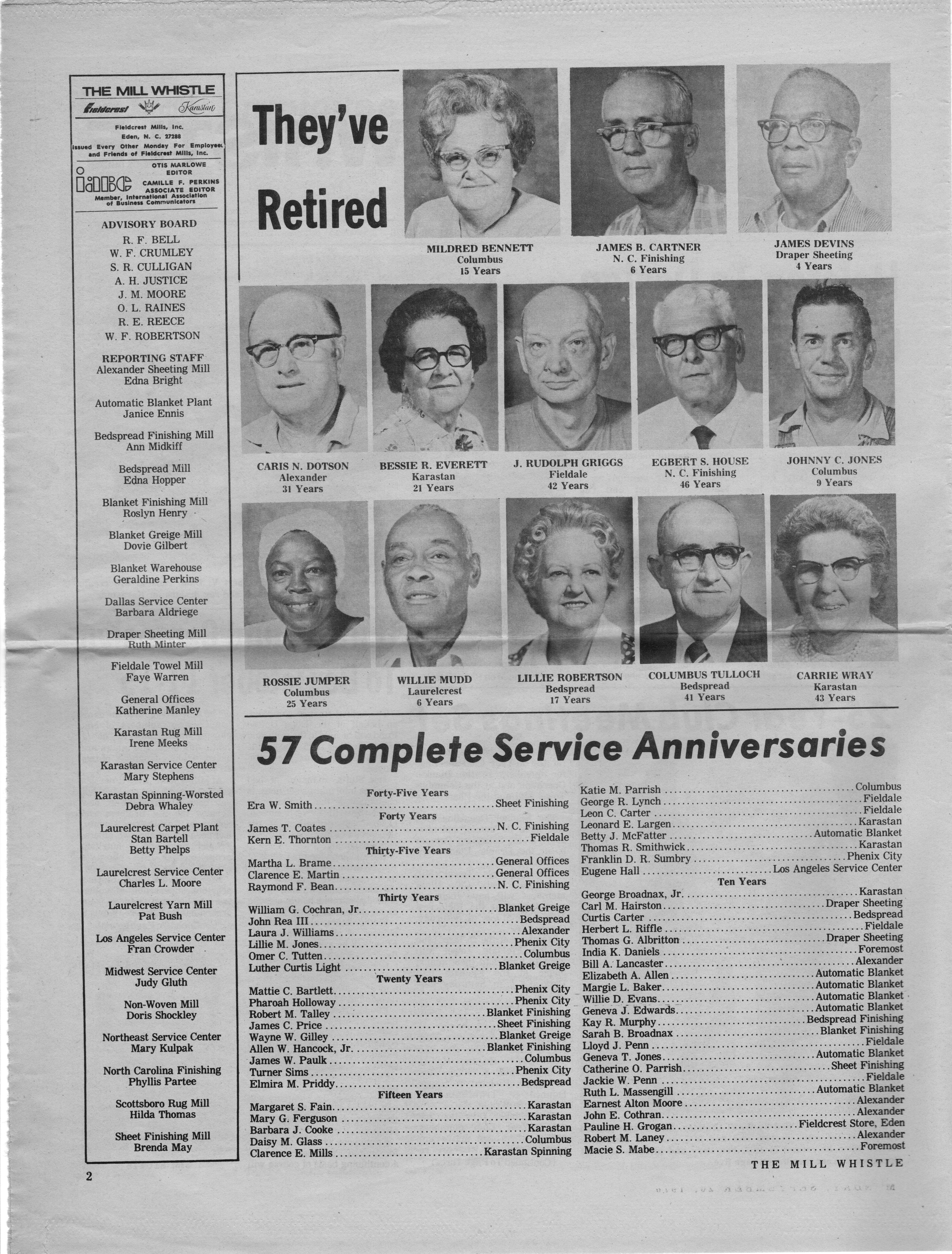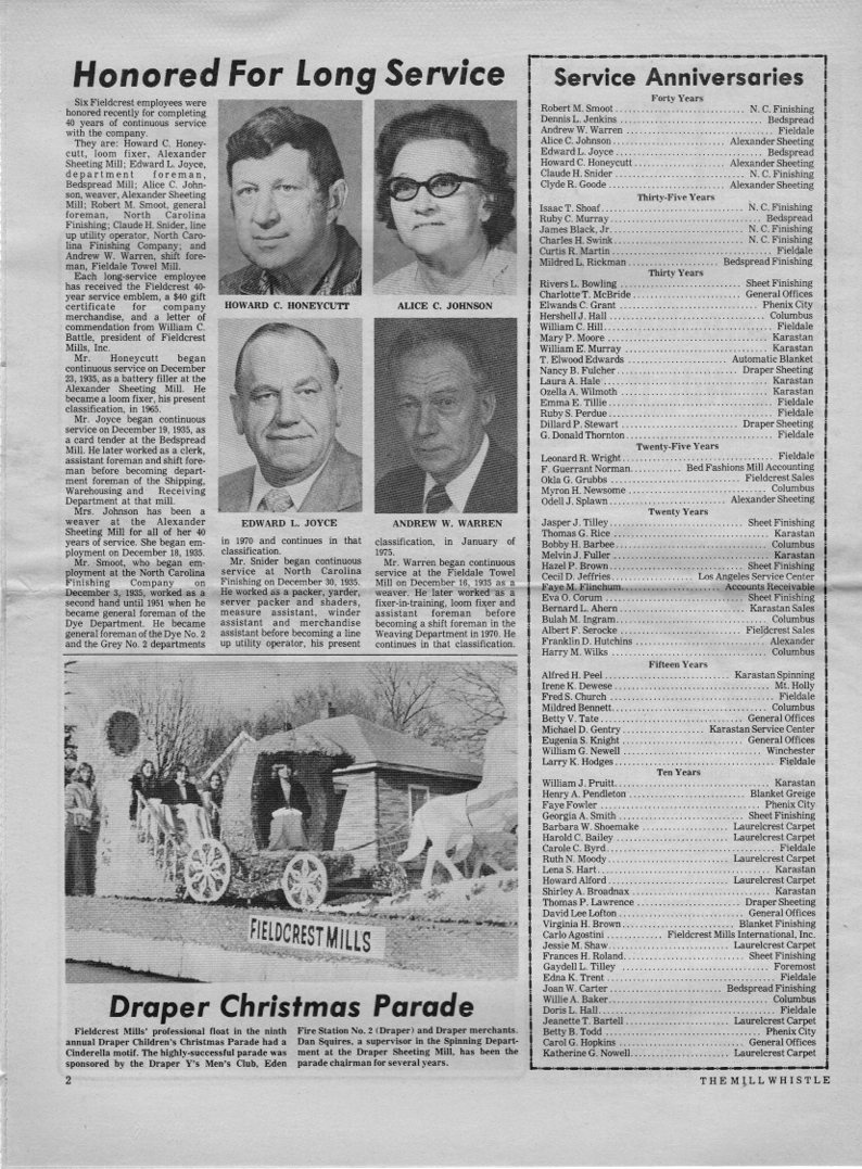 To see an index of individuals that are pictured in The Mill Whistle, click here to see names and the date that their photo appears, then return to this page and open the appropriate issue.