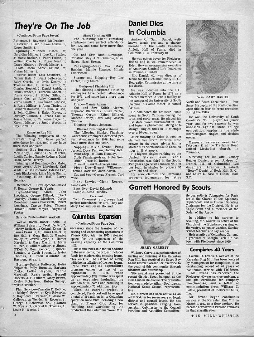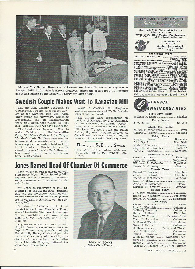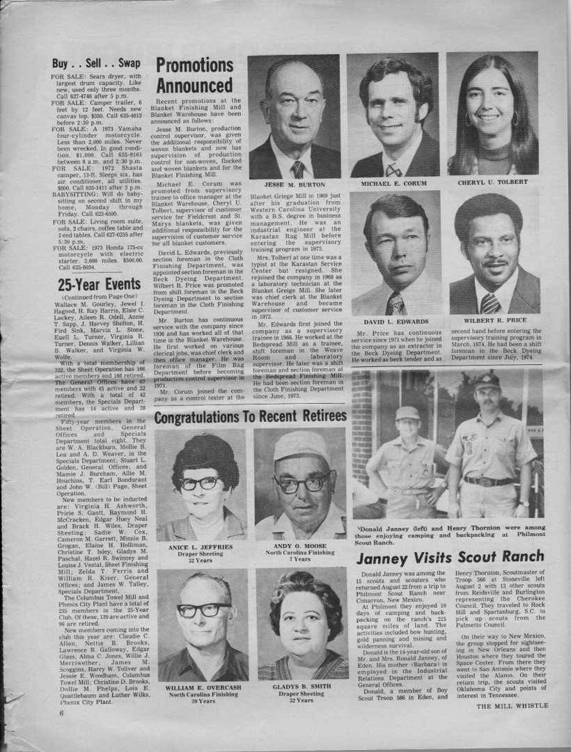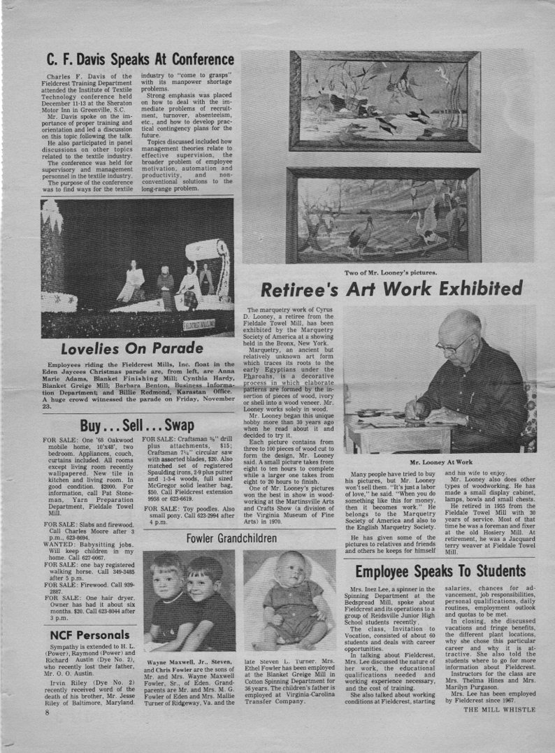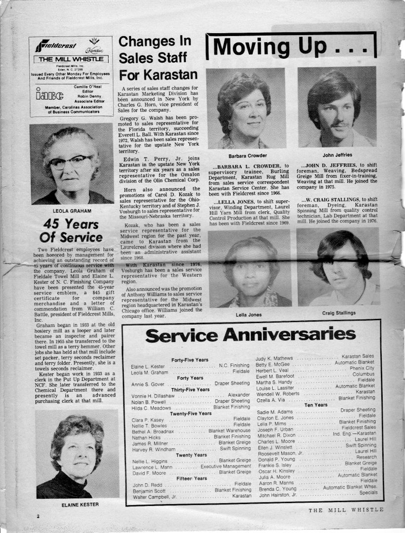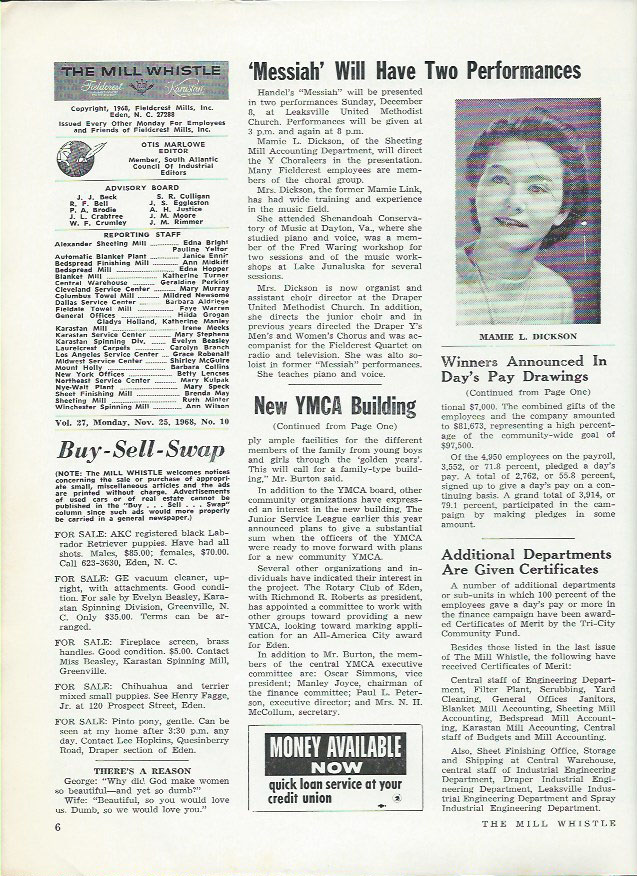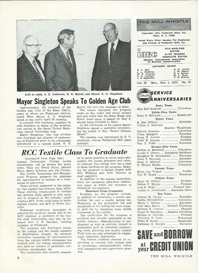 To see an index of individuals that are pictured in The Mill Whistle, click here to see names and the date that their photo appears, then return to this page and open the appropriate issue.